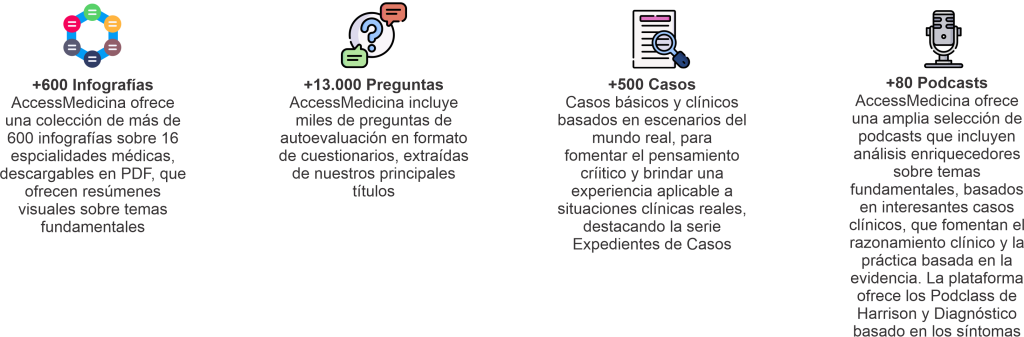 La Biblioteca UCH cuenta con una nueva suscripción online, llamada AccessMedicina, la plataforma médica en español que ofrece contenido y recursos interactivos actualizados y de calidad para nuestros estudiantes, docentes, residentes y profesionales de la salud, disponibles en cualquier momento y lugar.